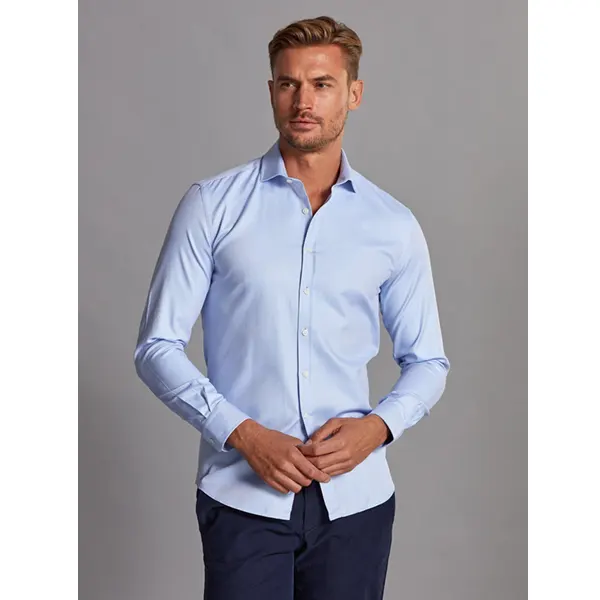 quantité de Café Coton Chemise cintrée en twill ciel - Petit Col