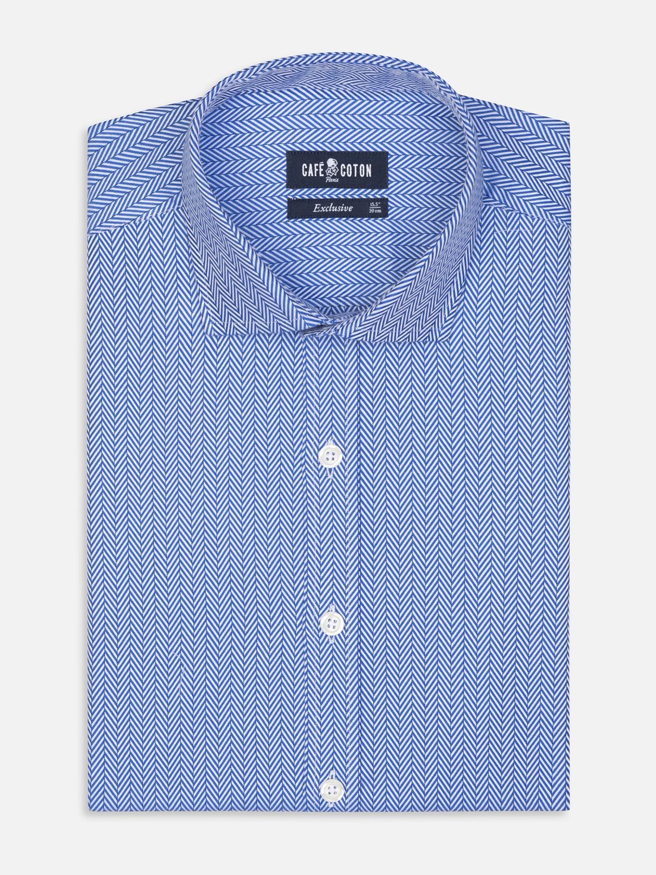 Café Coton Chemise cintrée Perry en Chevron bleu