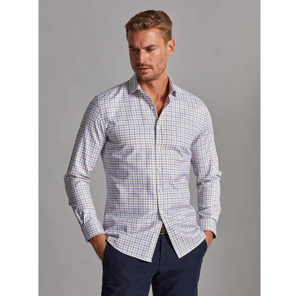 Café Coton Chemise Ian à carreaux ciel et marron