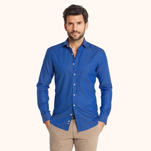 Chemise coupe cintrée en micro oxford bleu