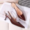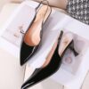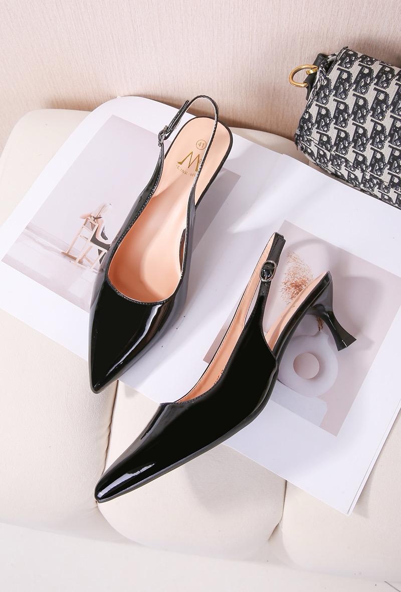 Description : Escarpins slingback en pu vernis et talon bobine