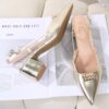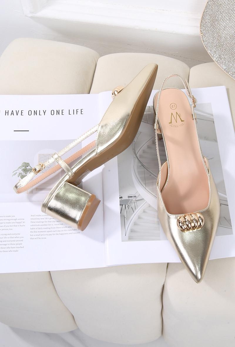 Description : Escarpins slingback à bout pointu et coquillage doré en pu vernis