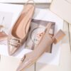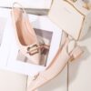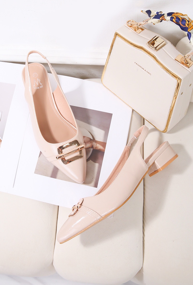 Description : Escarpins slingback en simili à bout pointu et talon carré avec boucle dorée