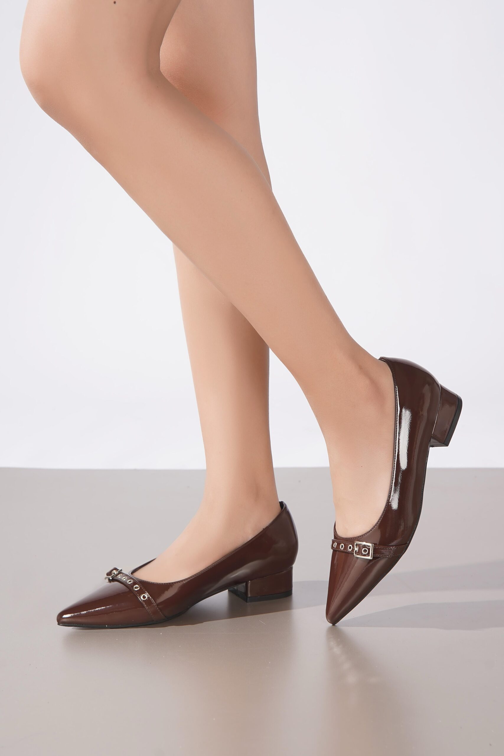 Ballerines en simili cuir verni , avec bout pointu + Petit Talon Carré