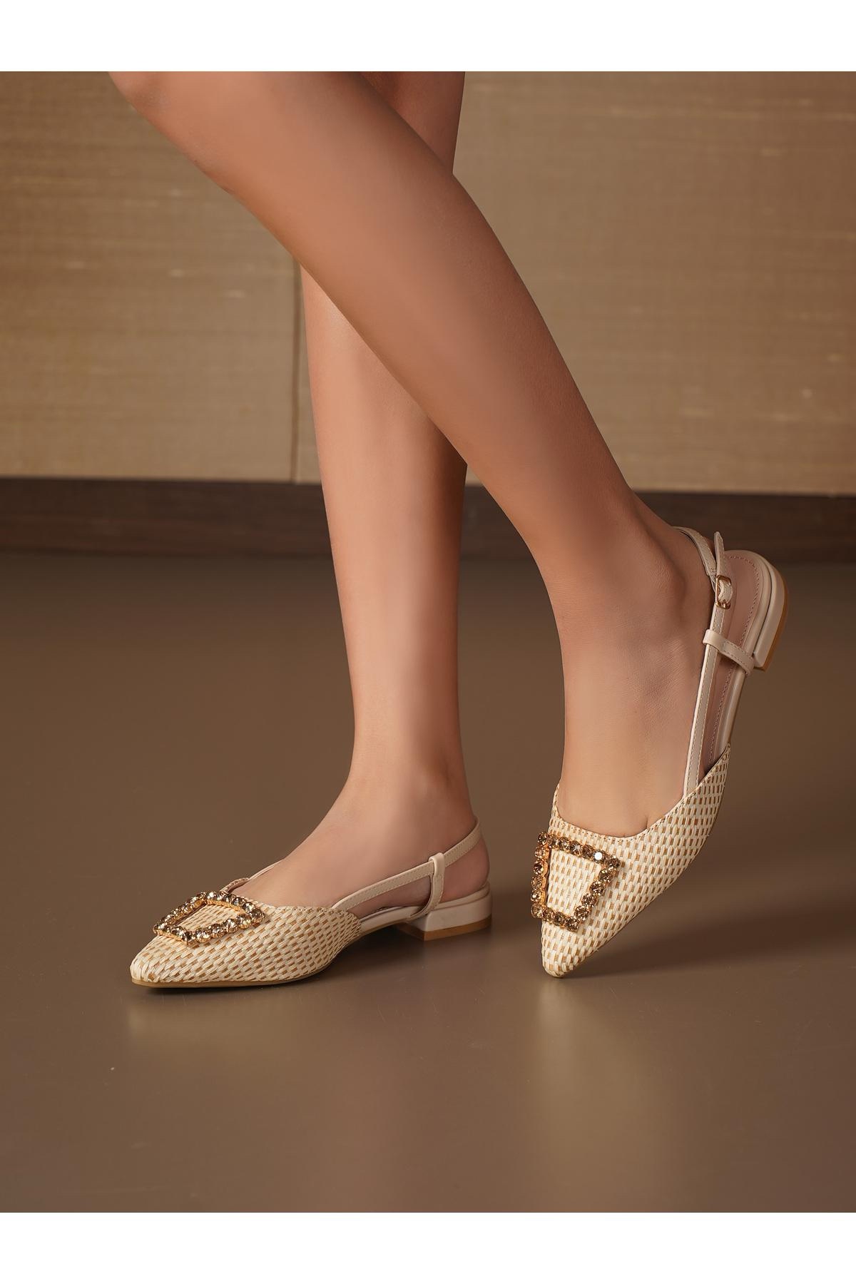 Craquez pour ces Ballerines à bout pointu à talon ouvert et bride à la cheville….