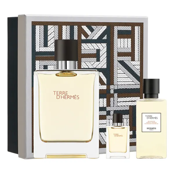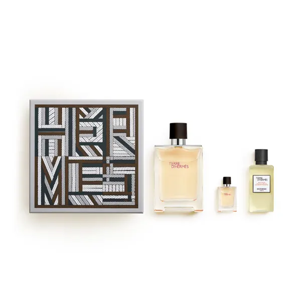 Ce coffret est compose d’un parfum terre d’hermes 75 ml, d’un parfum miniature 5 ml et d’un gel douche terre d’hermes 40 ml