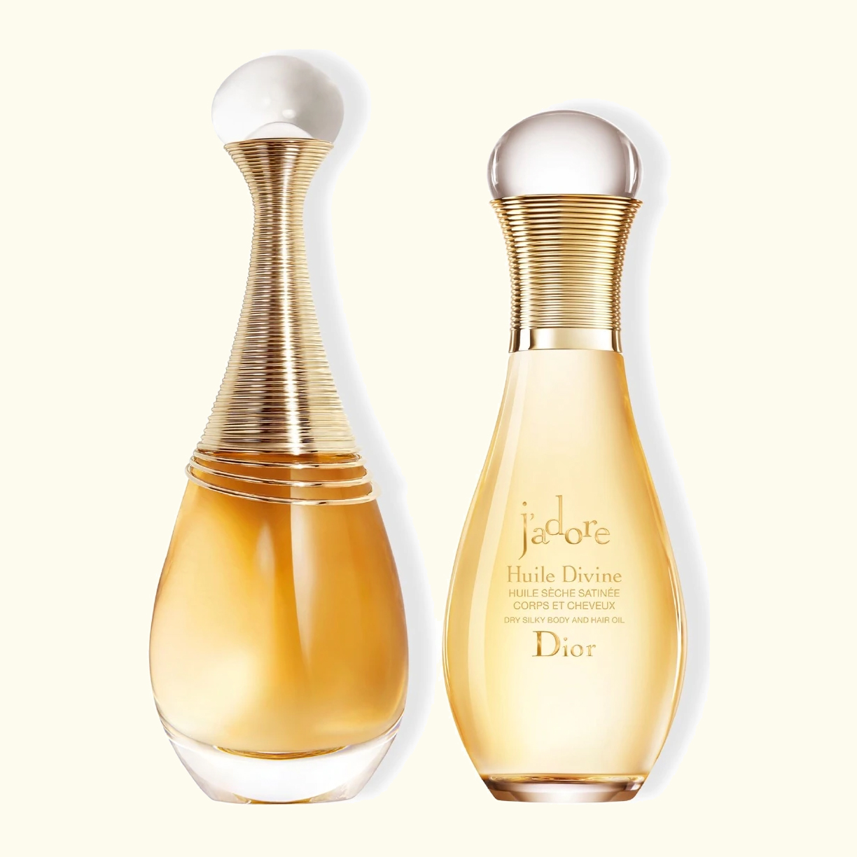 – J’adore Huile Divine, 75 ml. Une huile sèche pour le corps à la sensorialité aérienne, qui vient hydrater la peau tout en la magnifiant d’un toucher doux.