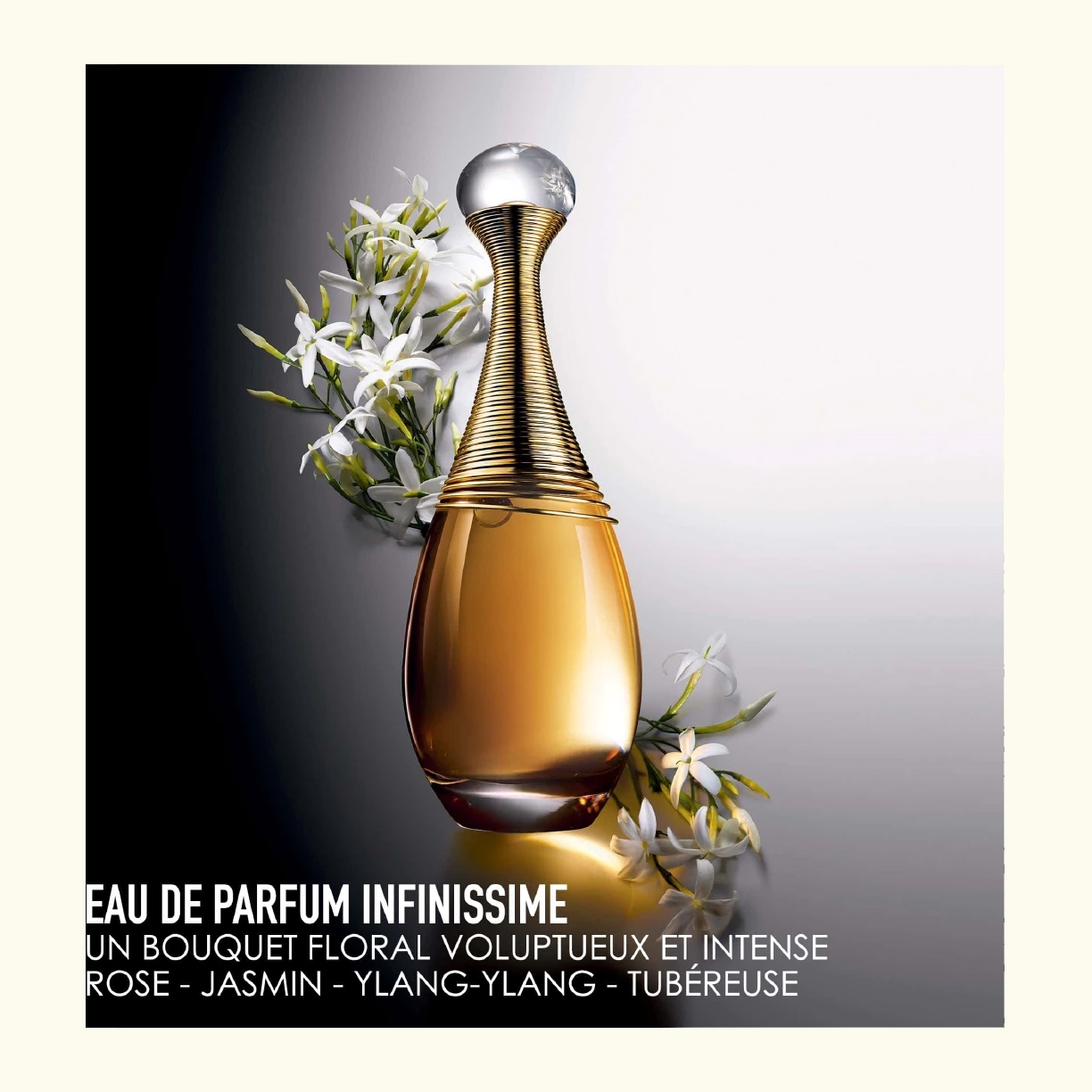 – J’adore eau de parfum infinissime, 50 ml. Sœur solaire de J’adore, cette fragrance tient sa singularité de la tubéreuse du pays de Grasse. Sensuelle et enveloppante, J’adore eau de parfum infinissime signe une féminité affirmée.