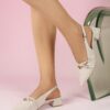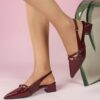 Escarpins À Bride Cheville Avec Talon carré ,Élégantes Pour Femmes Et Bout Pointu Décoré De Boucle,et de Couleur Unie