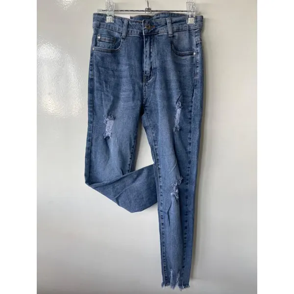 Jean Slim possède des poches et une taille sous passants fermée par un bouton et un zip devant Composition:68% Coton 30% Polyester 2%ELASTHANNE
