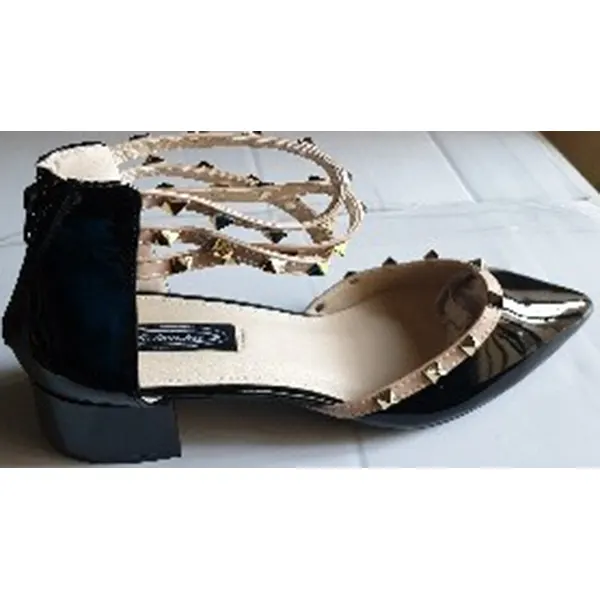 Escarpins femme en suédine Agrémenté de clous Fashion dorés .Optez pour ces très jolis escarpins pointus en verni avec fermeture derrière