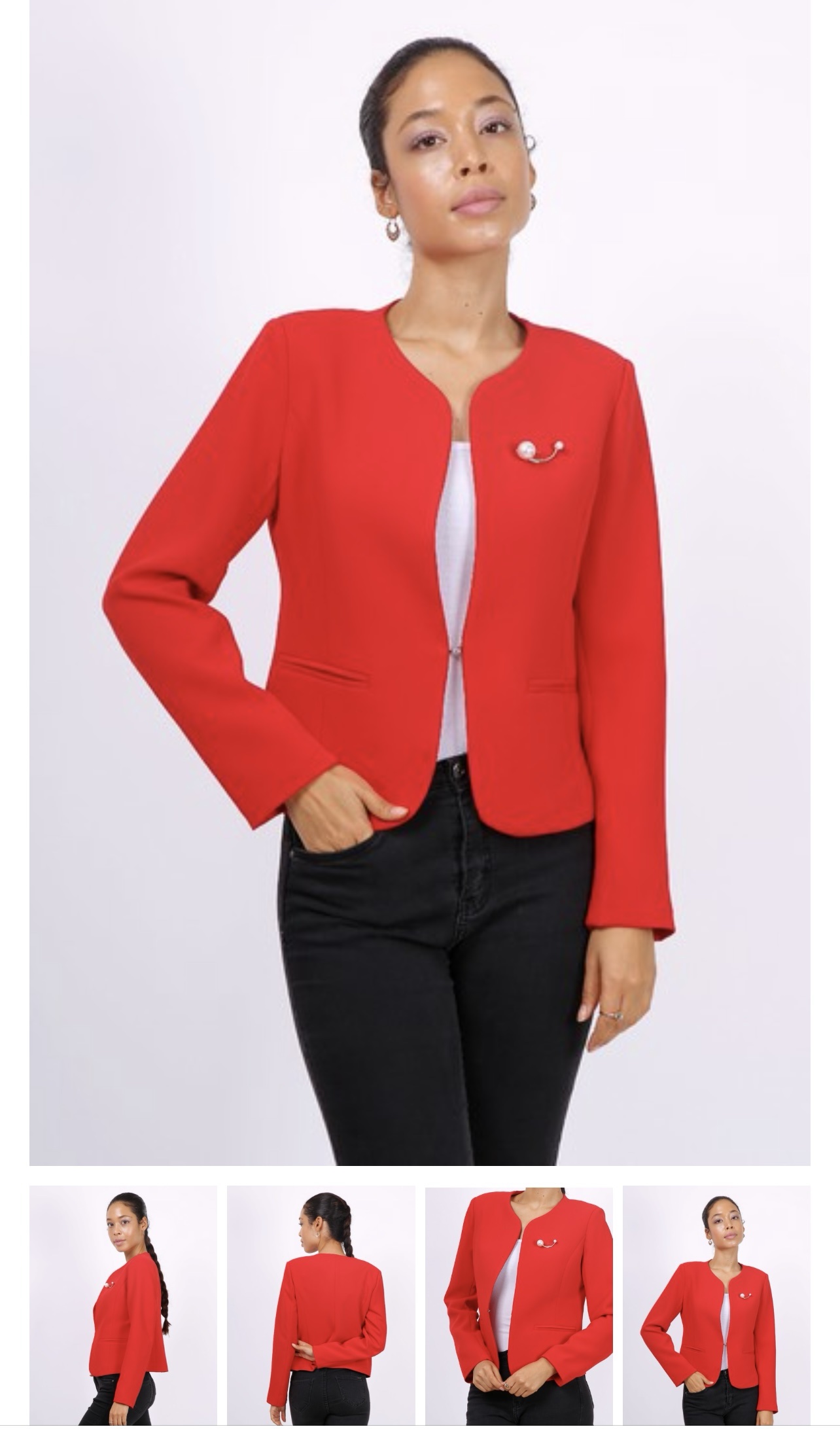 YiLianDa Femme Automne Tailleur OL Blazer Veste Slim Jacket Manches Longues Coat Rouge XL