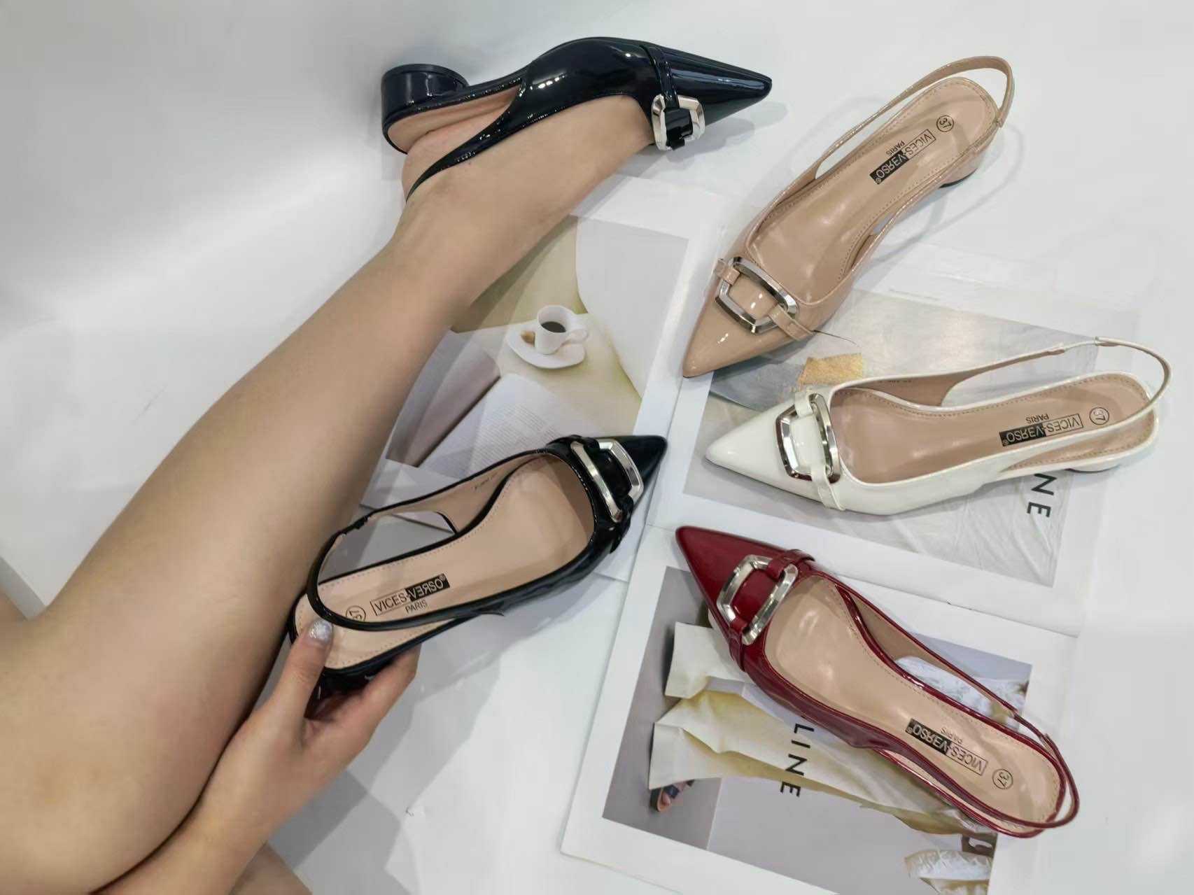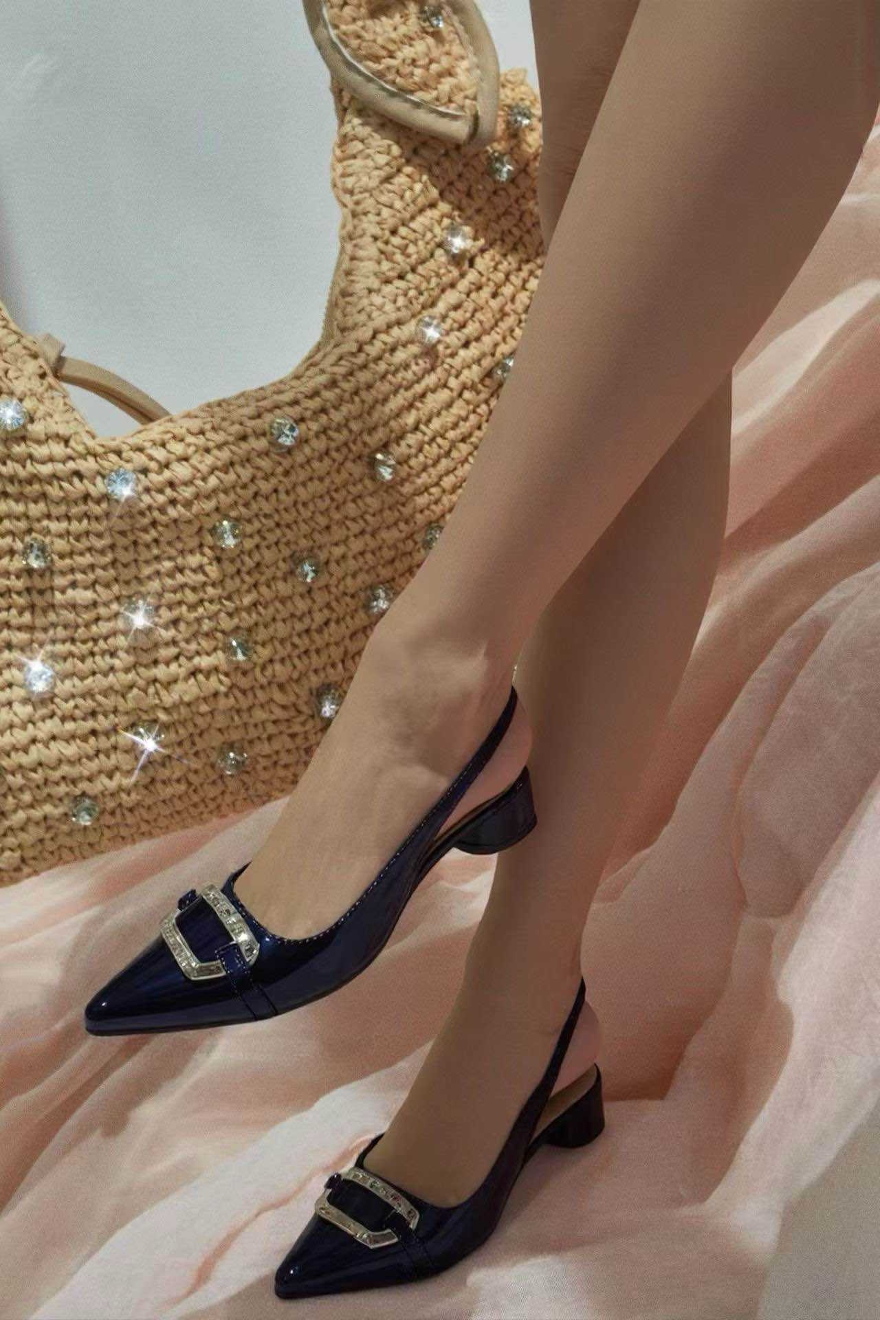 Craquez pour ces Ballerines à bout pointu à talon ouvert et bride à la cheville….