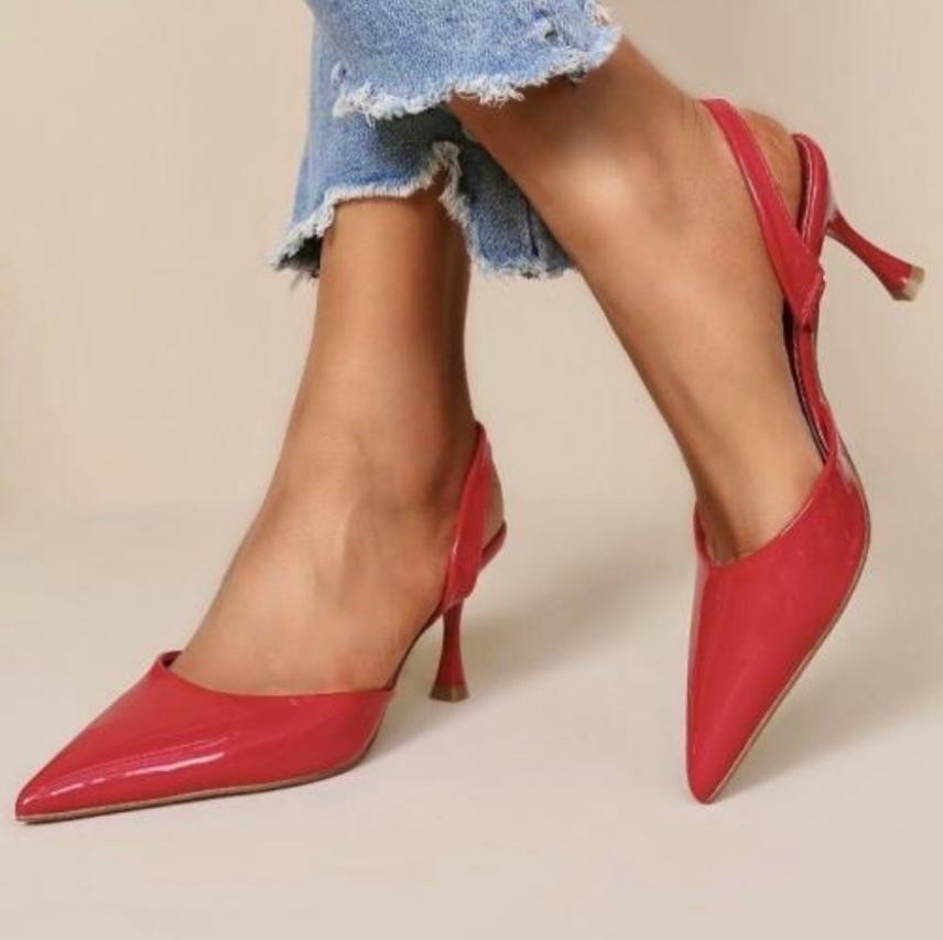 Craquez pour ces somptueux escarpins pointus à talon ouvert et bride à la cheville..