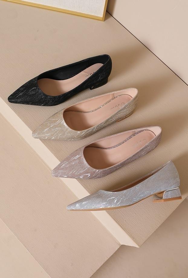 Ballerines en simili cuir avec bout pointu + Petit Talon Carré